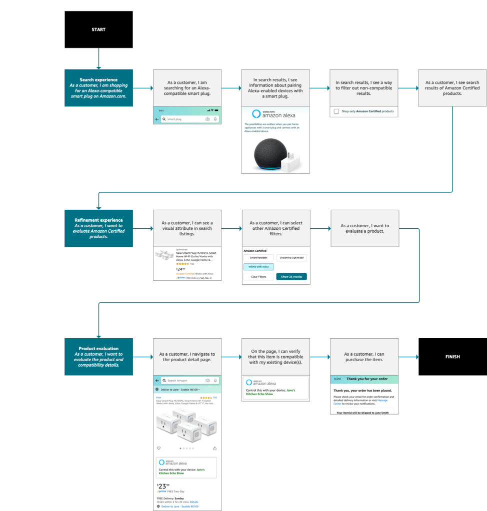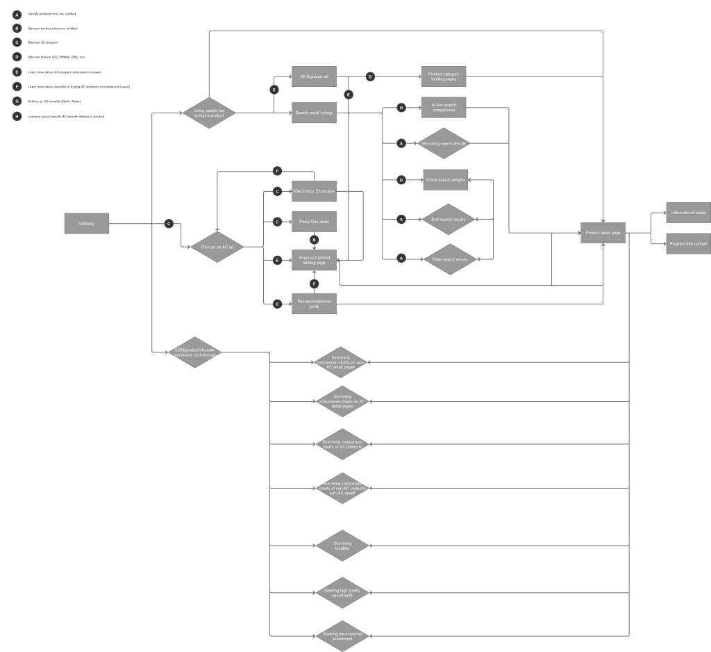 A major customer pain point was understanding which products were compatible with Amazon services. Customers struggled to verify compatibility between devices and services, especially when navigating large search result sets. Internally, one of the biggest hurdles was brand confusion—customers already had difficulty distinguishing among Amazon’s existing badging systems, such as Amazon’s Choice. This created complexity around how to introduce and clearly communicate the value of Amazon Certified branding at both the program and product attribute levels.