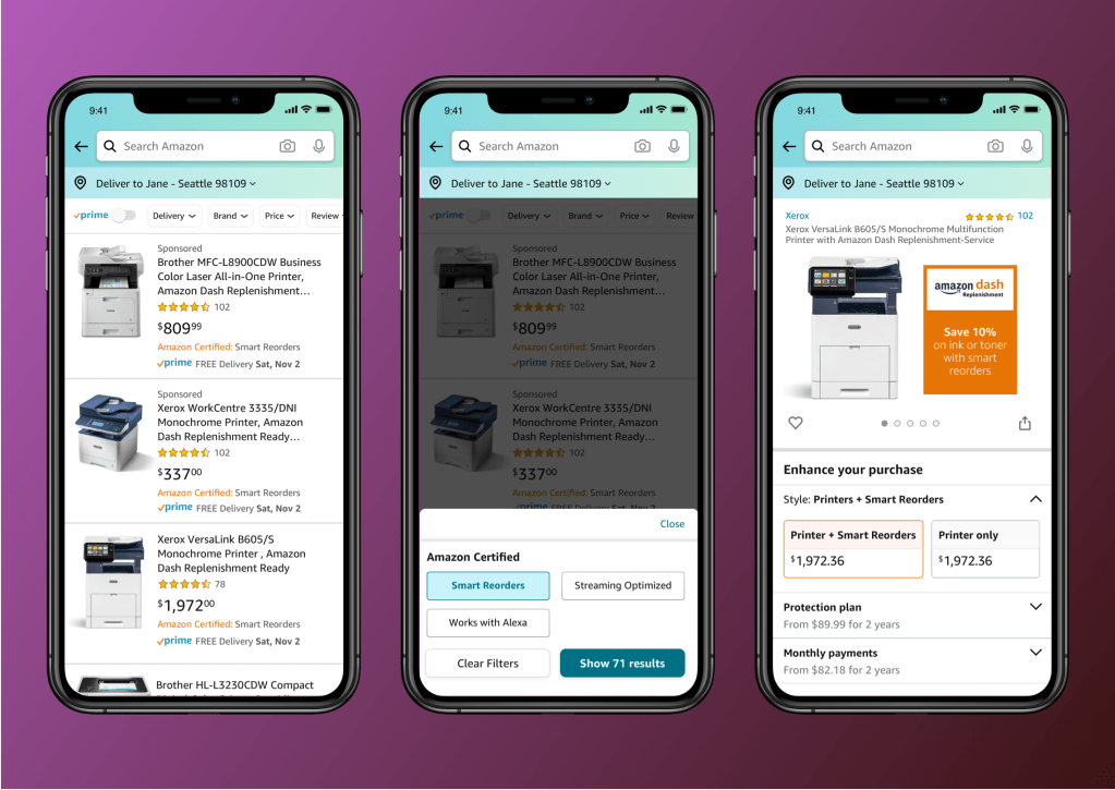 Amazon Certified was a customer-facing certification program developed to help shoppers quickly identify products compatible with Amazon’s technology offerings. The certification served as a promise of quality and compatibility, enabling customers to make more confident purchasing decisions. At launch, the program focused on Works with Alexa, Dash Replenishment Services (later rebranded as Smart Reorders), and Amazon Video (now deprecated). The initiative aimed to help customers: (1) identify compatible products faster, (2) reduce time spent comparing options, and (3) discover new products within the Amazon technology ecosystem.