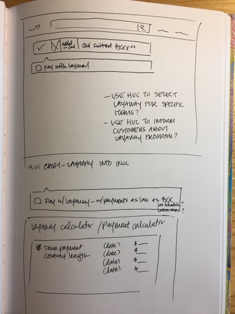 I focused on creating a digital layaway experience that supported flexible payment scheduling and highlighted key customer benefits: interest-free payments, no credit check, and secure product reservation. Design decisions were grounded in insights from user interviews, including use cases like holiday timing, which informed communication strategies around planning and pickup.