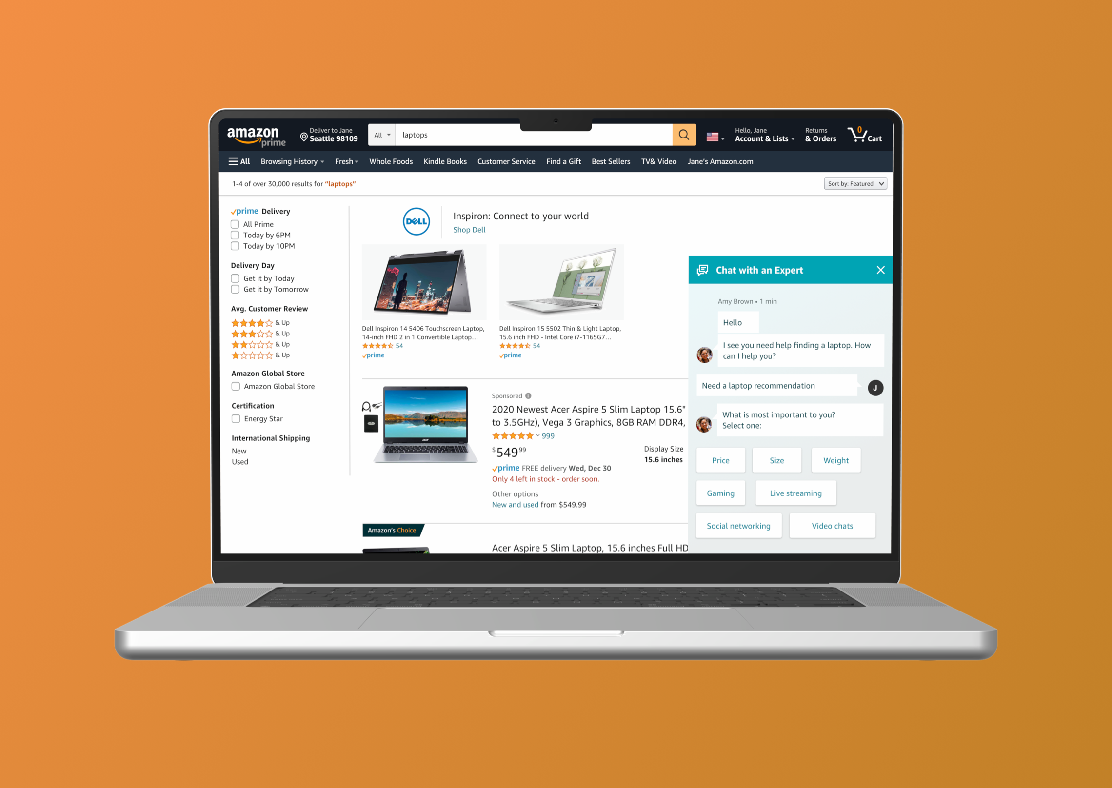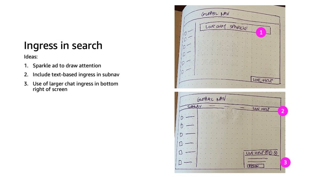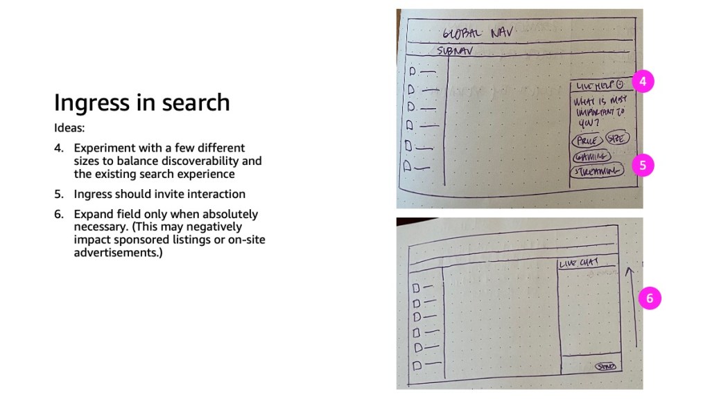Amazon’s existing search experience often overwhelmed customers with lower technical knowledge—especially when shopping for complex products like laptops. Research showed that these customers preferred personalized guidance and often turned to external sources for help. To address this gap, I designed a live chat support experience to assist customers using broad, upper-funnel queries like “laptop.”