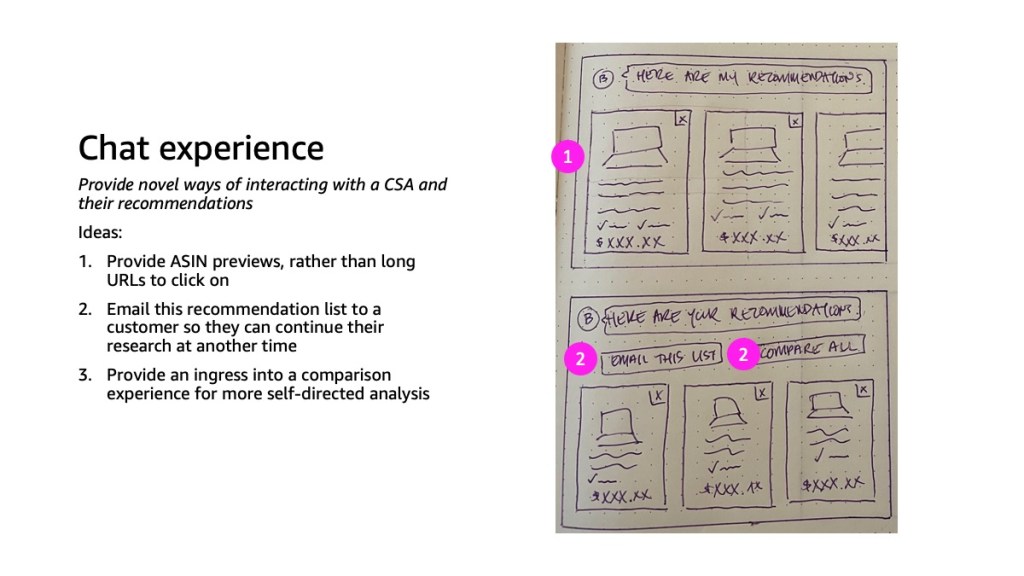 Non-technical shoppers struggled to narrow down product options on their own. The sheer volume of choices and technical jargon led to confusion, abandoned searches, or reliance on external advisement. Amazon needed a way to provide in-the-moment guidance without disrupting the overall shopping experience. This would help reduce the risk of customers researching and shopping elsewhere, whether that was other websites or at brick and mortar stores.