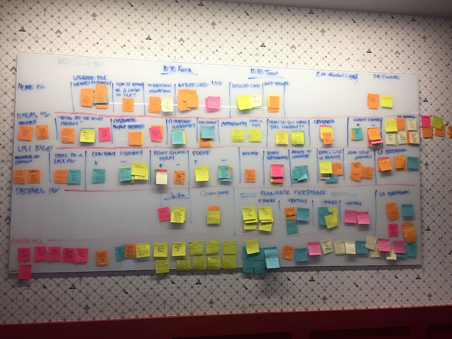 Product roadmap workshops are the lifeblood of any product team. As the multi-year UX design and research lead for the warranties team (as well as a loyal warranties customer), I have unique perspective and appreciation for this product space. In order for us to come up with a robust backlog of ideas, I help plan, coordinate, and summarize findings from project roadmap workshops for our multi-disciplinary team. I use the opportunity to present the latest UX design thinking and research, and then help the team through a series of divergence and convergence exercises. We gradually brainstorm and construct customer-centric product pitches for consideration and narrow down priorities on the roadmap.
